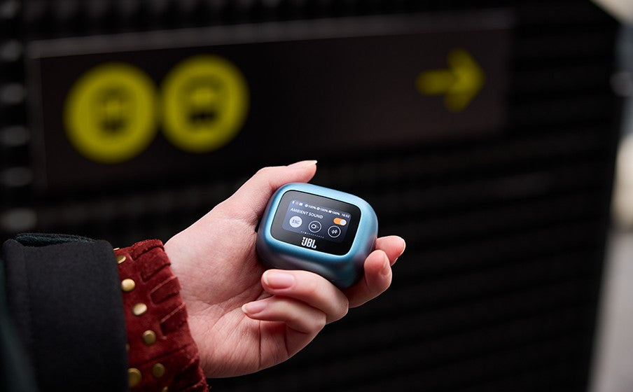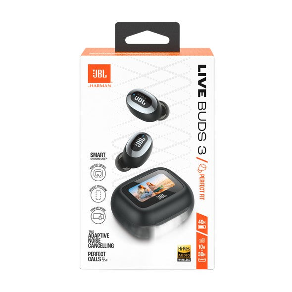 Get customized sound without even looking at your phone. Use the controls on the Smart Charging Case™ of the JBL Live Buds 3 true wireless noise-cancelling earbuds with Hi-Res Audio to customize all of their features without having to open the JBL app on your device. Adjust volume and EQ, control your music, take phone calls, see messages—you can even customize the screensaver with your favorite photos. And that’s before you even get to the monumental JBL Signature Sound of the Live Buds 3 themselves. Best-in-class True Adaptive Noise Cancelling tunes out distractions. JBL Spatial Sound makes movies and music truly immersive. And if you have to take a call, 6 mics ensure perfect sound quality even in the noisiest surroundings. All this, plus a 40-hour charge: 10 hours in the buds* and another 30 in the case—and they can charge wirelessly. The charging case features a loop to attach a lanyard for even more convenience. Great sound has never been simpler. (*with ANC off)