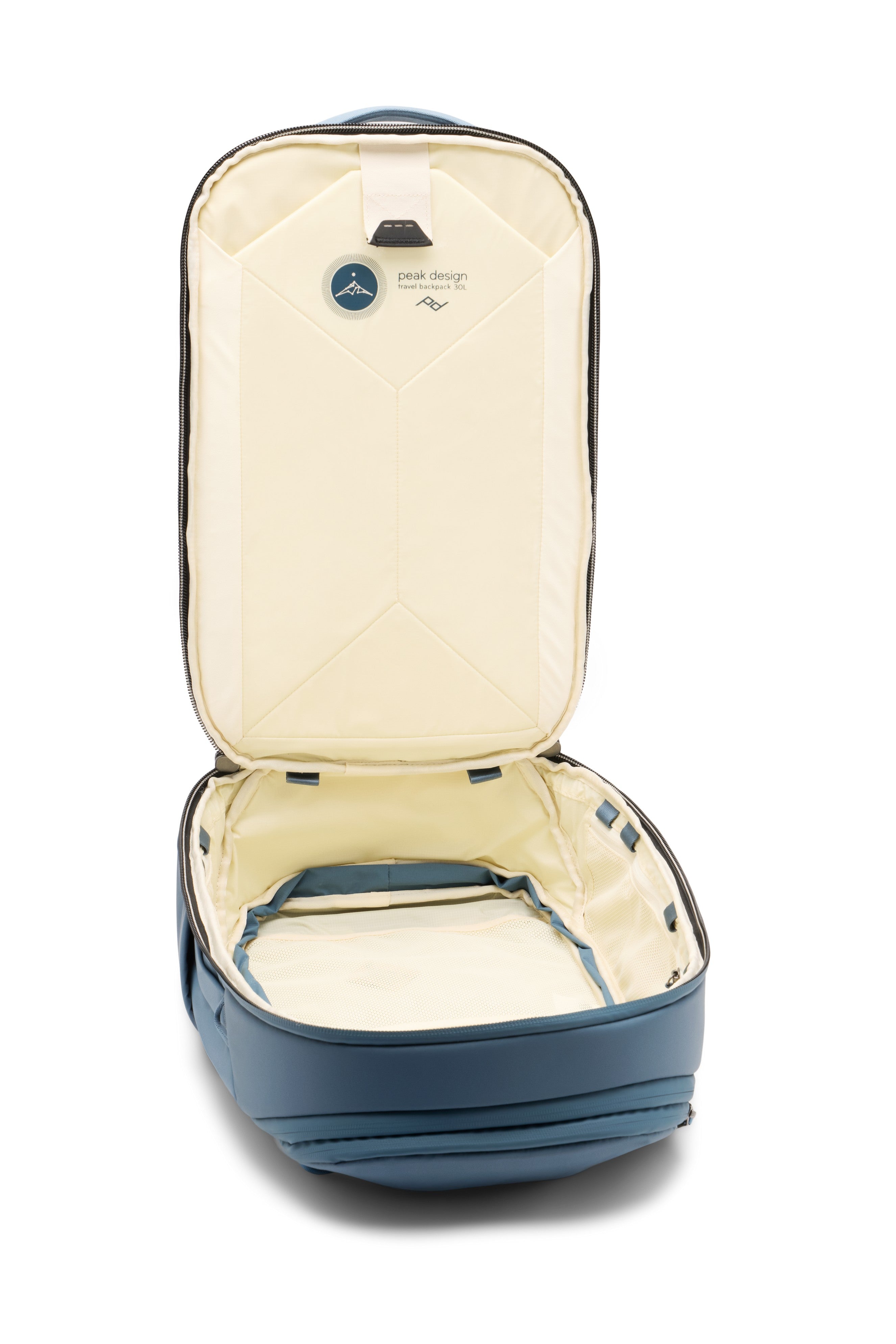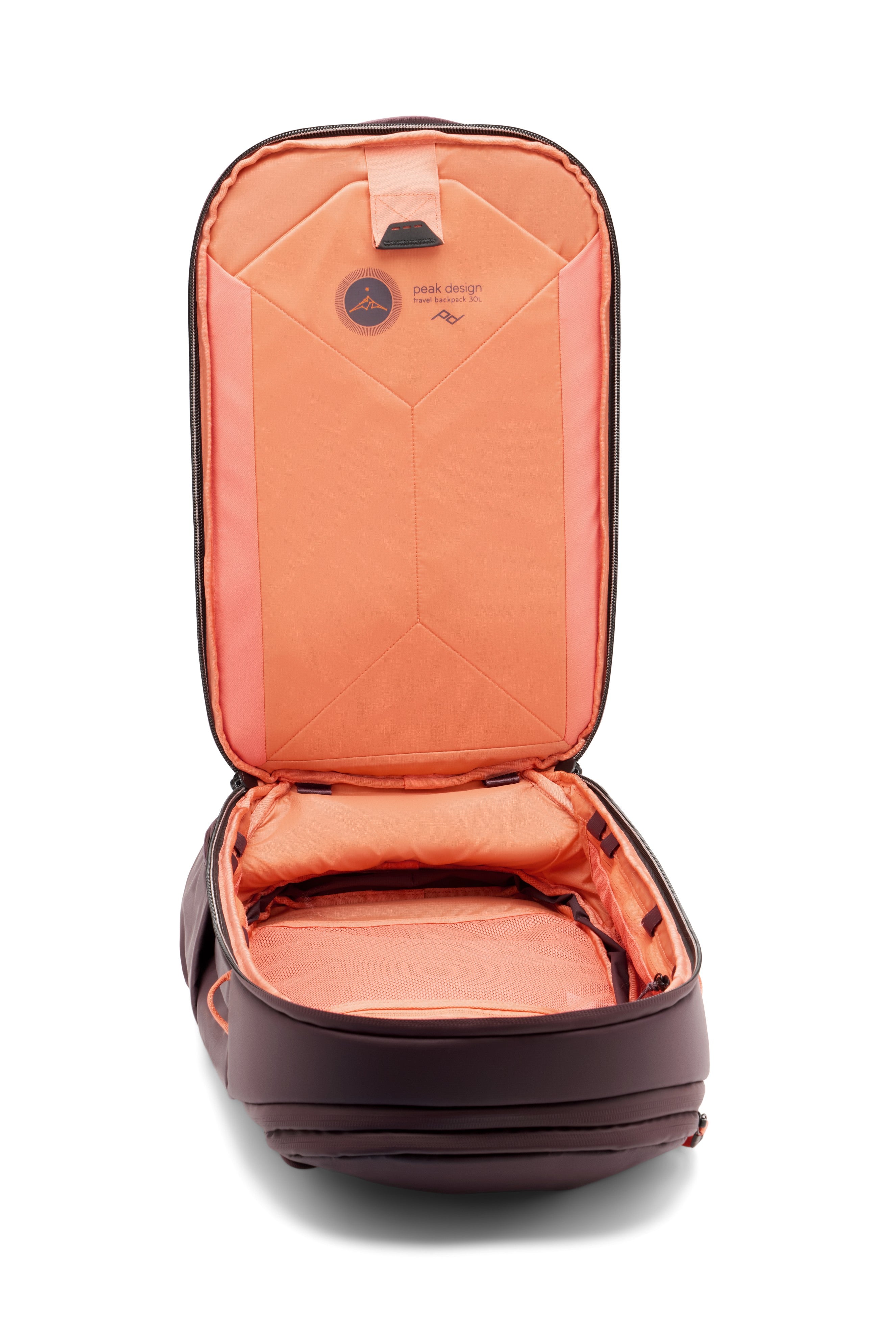 The smaller sibling of our iconic 45L Travel Backpack, the 30L is a rugged, expandable daypack ideal for shorter travel and everyday carry because No Two Trips The Same™. A big, beautiful rear hatch provides total access for easy packing and unpacking. An enlarged top pocket is subdivided with stretch and zip pockets for keys, glasses, passport, etc. The weatherproof #10 UltraZip can withstand decades of use thanks to its proprietary abrasion-resistant thread. Meets international carry-on size requirements in expanded (33L) and compressed (27L) form. Expansive side pockets for water bottles, tripods, and more. Padded laptop + tablet sleeves. Tuck-away shoulder straps and optional hip belt accessory. 360-degree grab handles. Cleverly concealed external carry straps. All packed within a sleek, weatherproof 100% recycled 400D nylon canvas shell with 900D bottom liner. Fair Trade Certified and 100% carbon neutral.