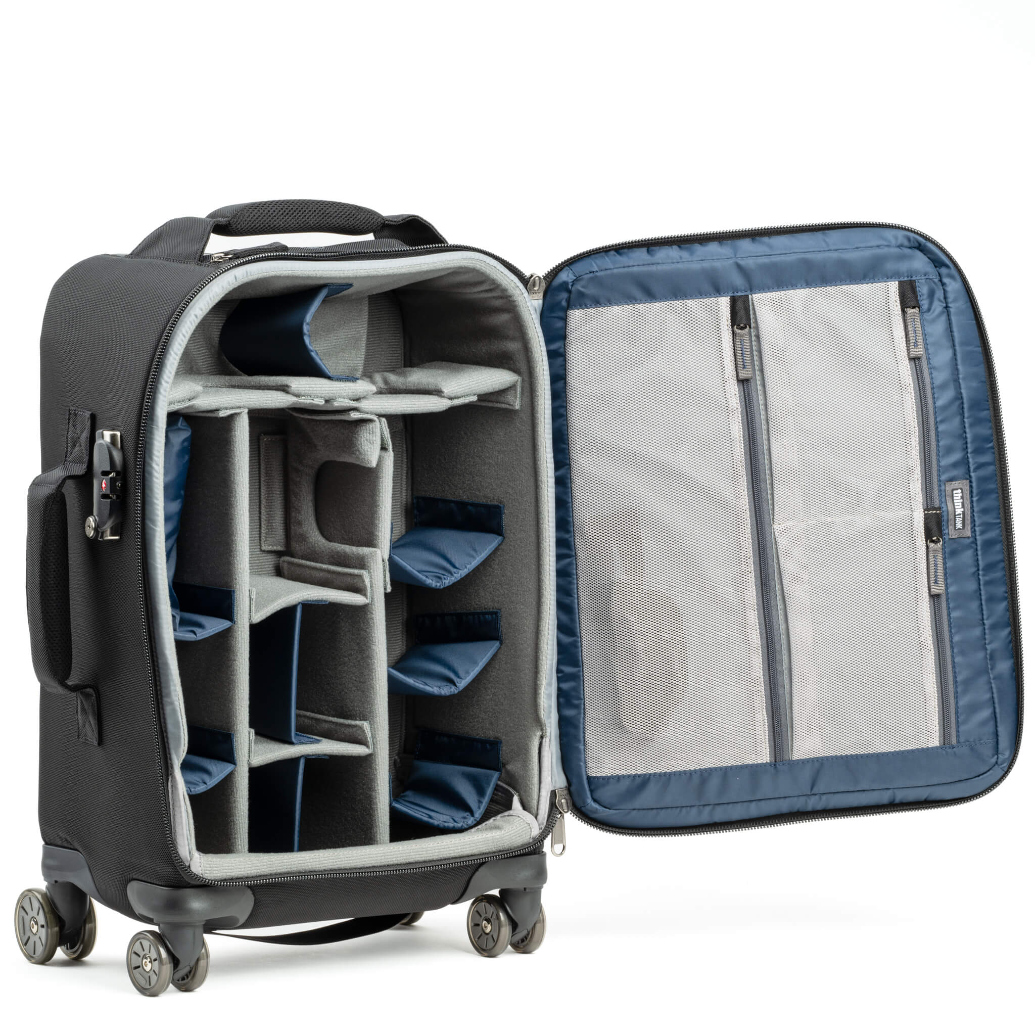 The Airport Roller Derby is an 8-wheel rolling camera case that is easy to maneuver in tight spaces and requires minimal effort to push or pull.
