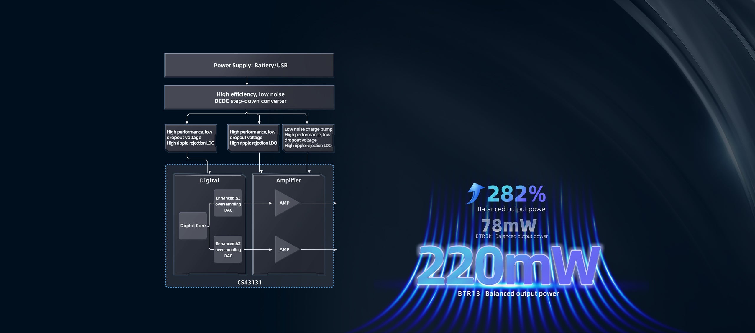 Supports HD Bluetooth codec LDAC | Dual CS43131 fully balanced | Powerful 220mW output | Global PEQ | 3.5 + 4.4 headphone outs | 0.96-inch large color IPS | Patented car mode | Supports mics and in-line controls