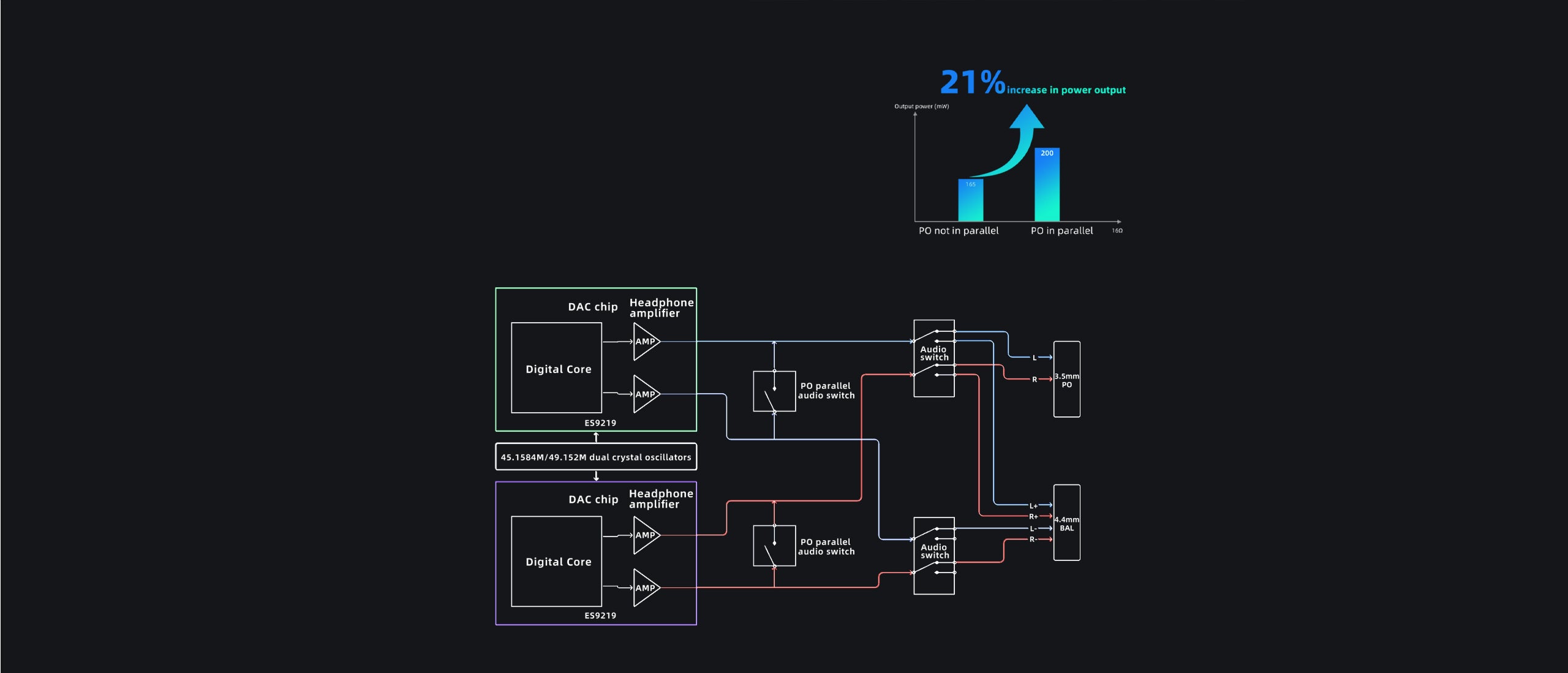 QCC5125 + XU316 high-performance combo | Change modes with just one button | Global parametric EQ 3.5mm+4.4mm dual outputs | 0.96-inch OLED display | Dual curved glass Independent power supply for amp | Dual DACs for fully balanced Comprehensive battery protection | Two attractive colors