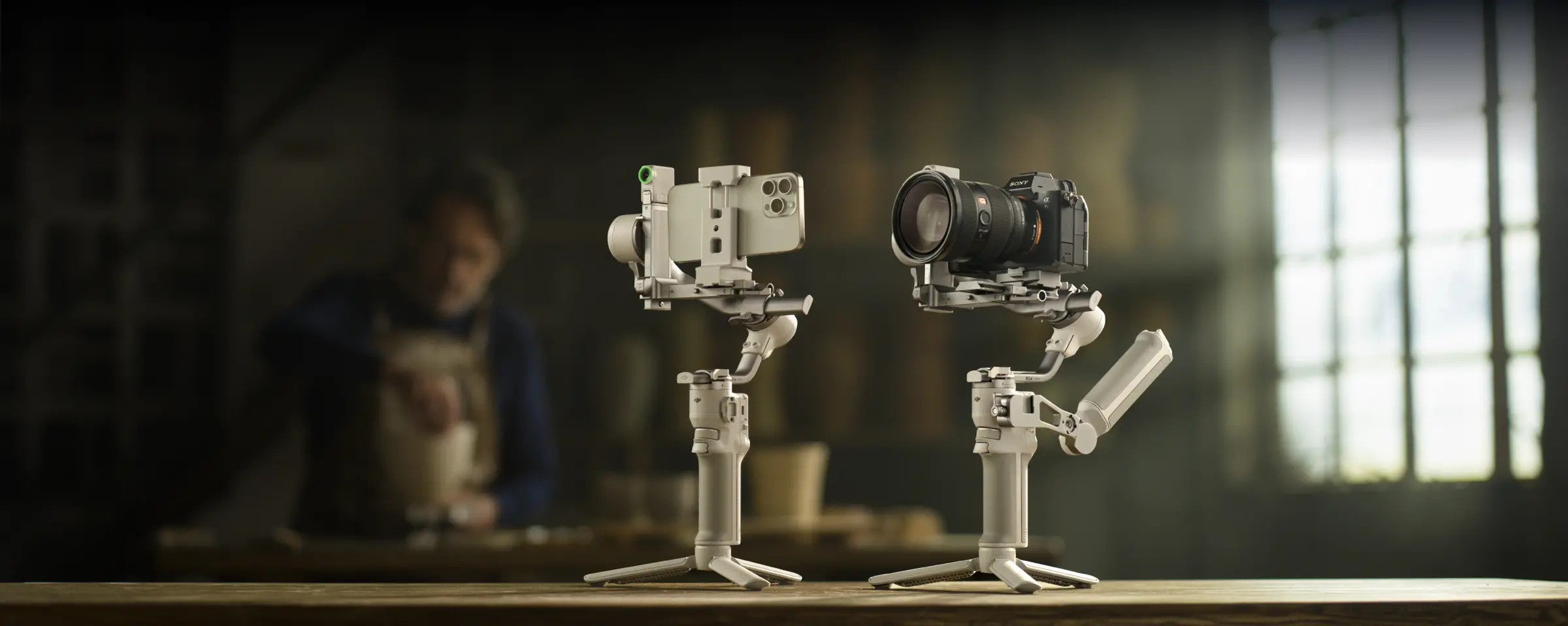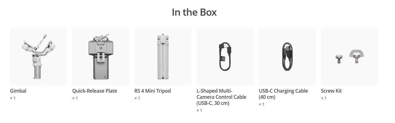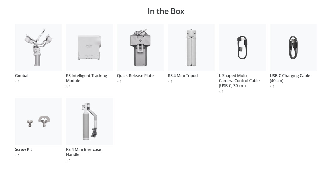 Additionally includes the Tracking Module and Mini Briefcase Handle. The former provides intelligent tracking initiated by both gesture and trigger; the latter makes low-angle handheld filming more effortless.