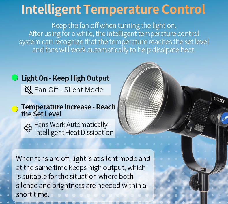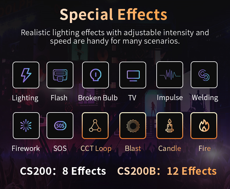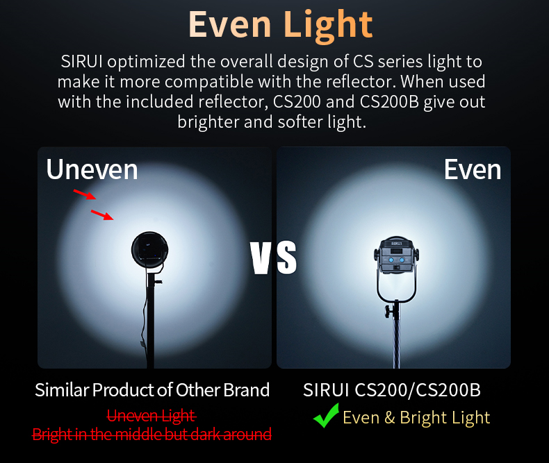 With high power, high output, wide CCT range and convenient operation, CS200B will provide you with both ideal lighting effects and excellent shooting experience.