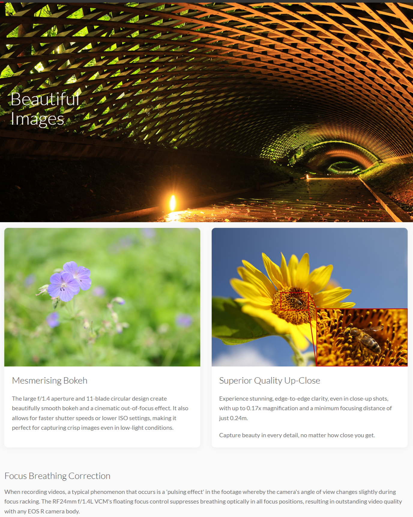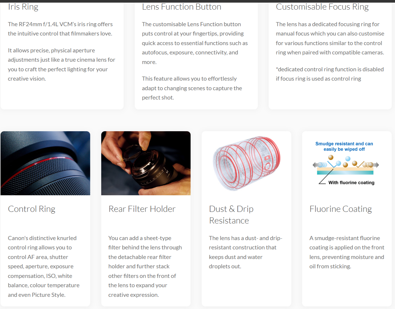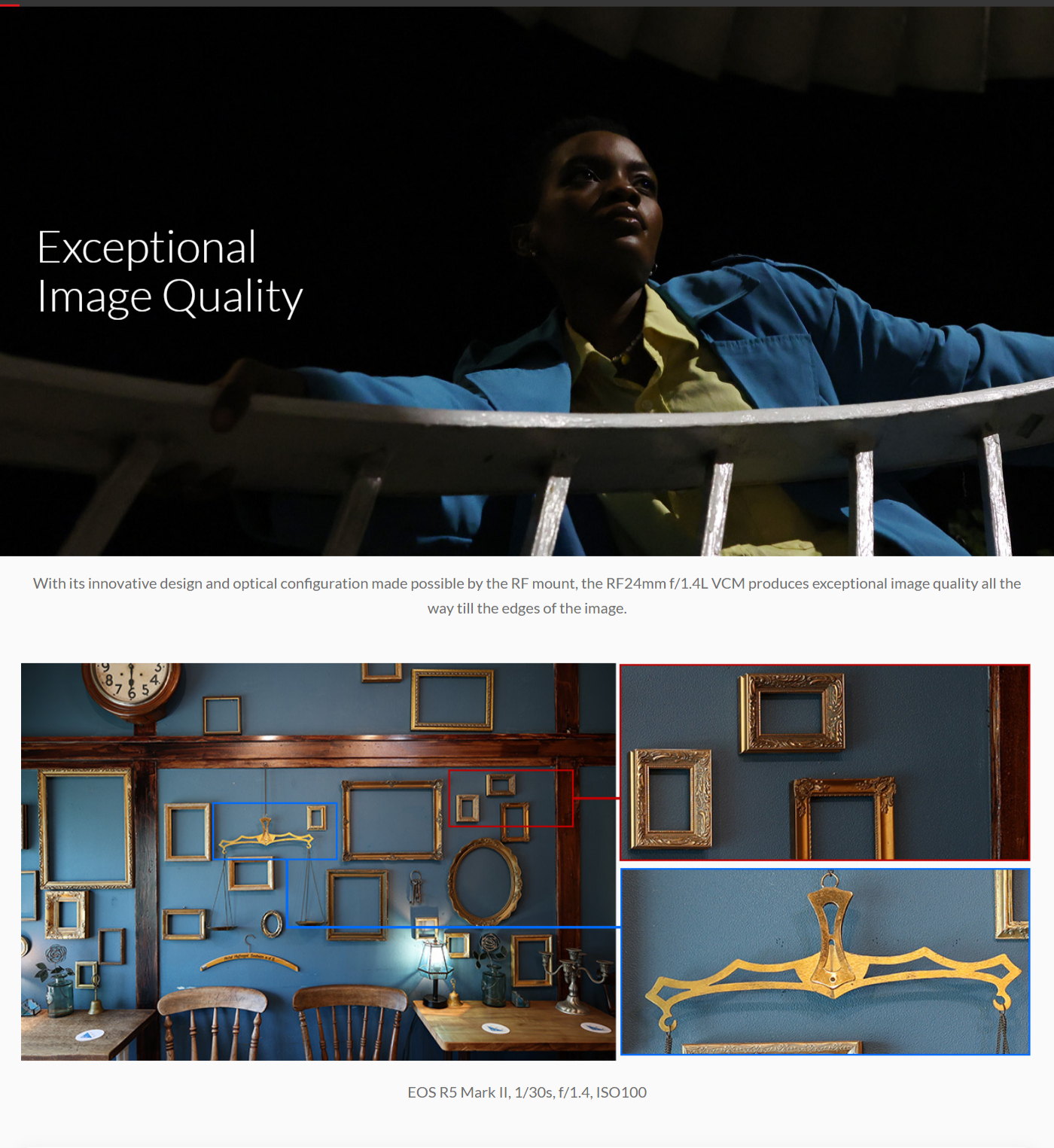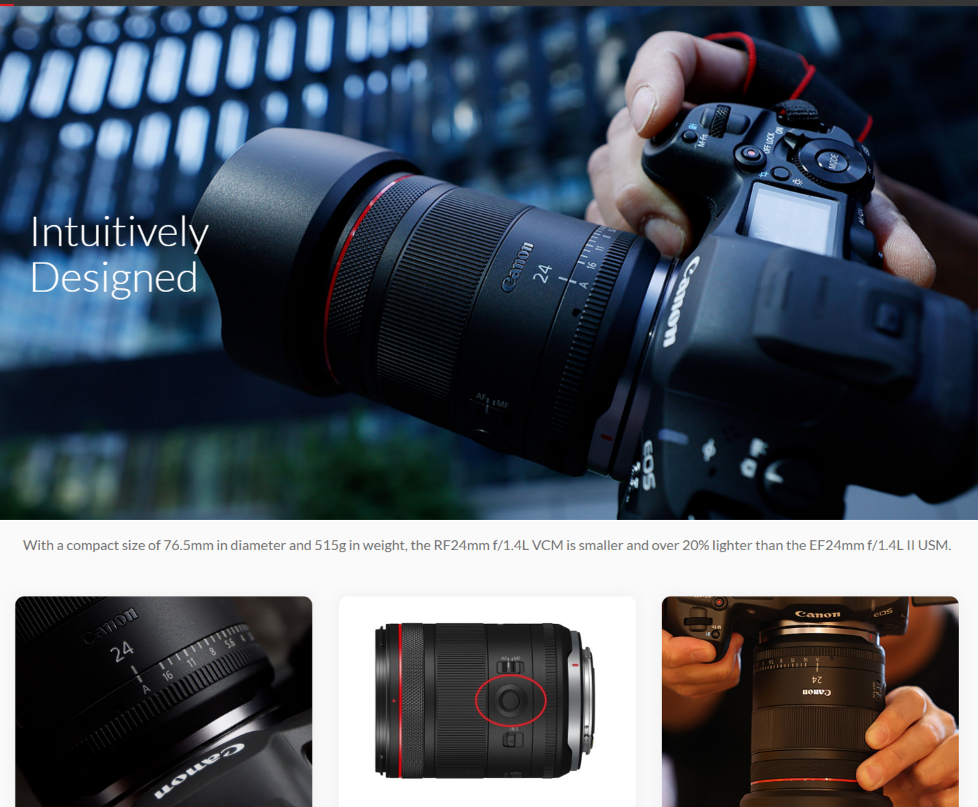 The RF24mm f/1.4L VCM lens combines ultra-fast, silent autofocus powered by Voice Coil Motor (VCM) and Nano USM technology, making it a perfect fit for filmmaking. Its 24mm wide angle focal length gives you that immersive perspective.