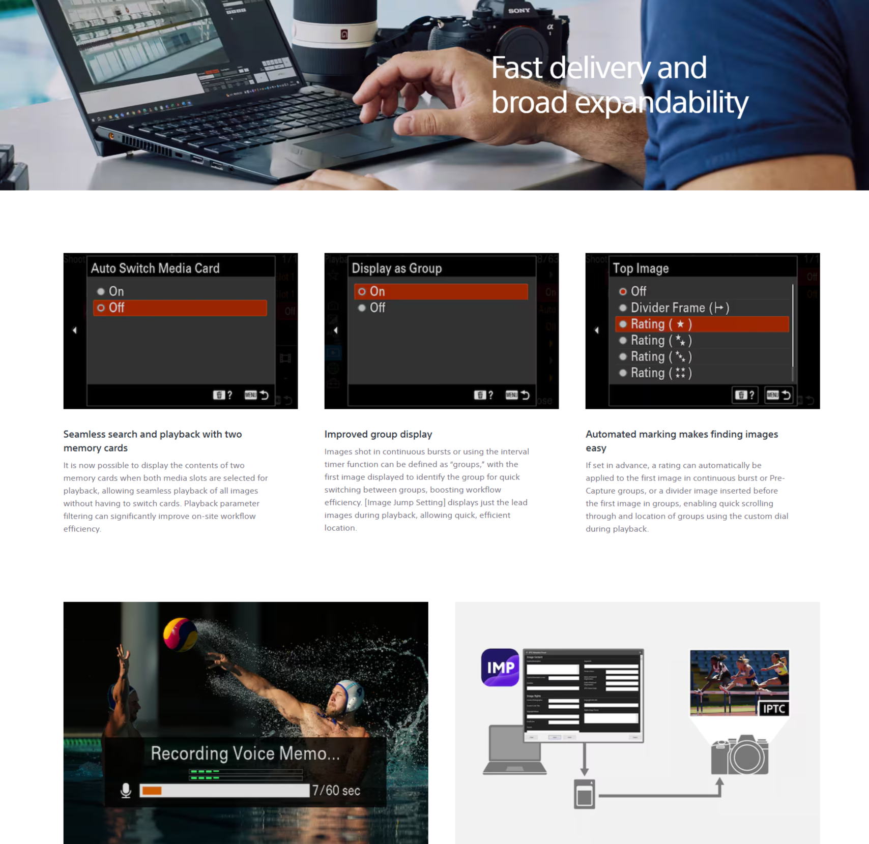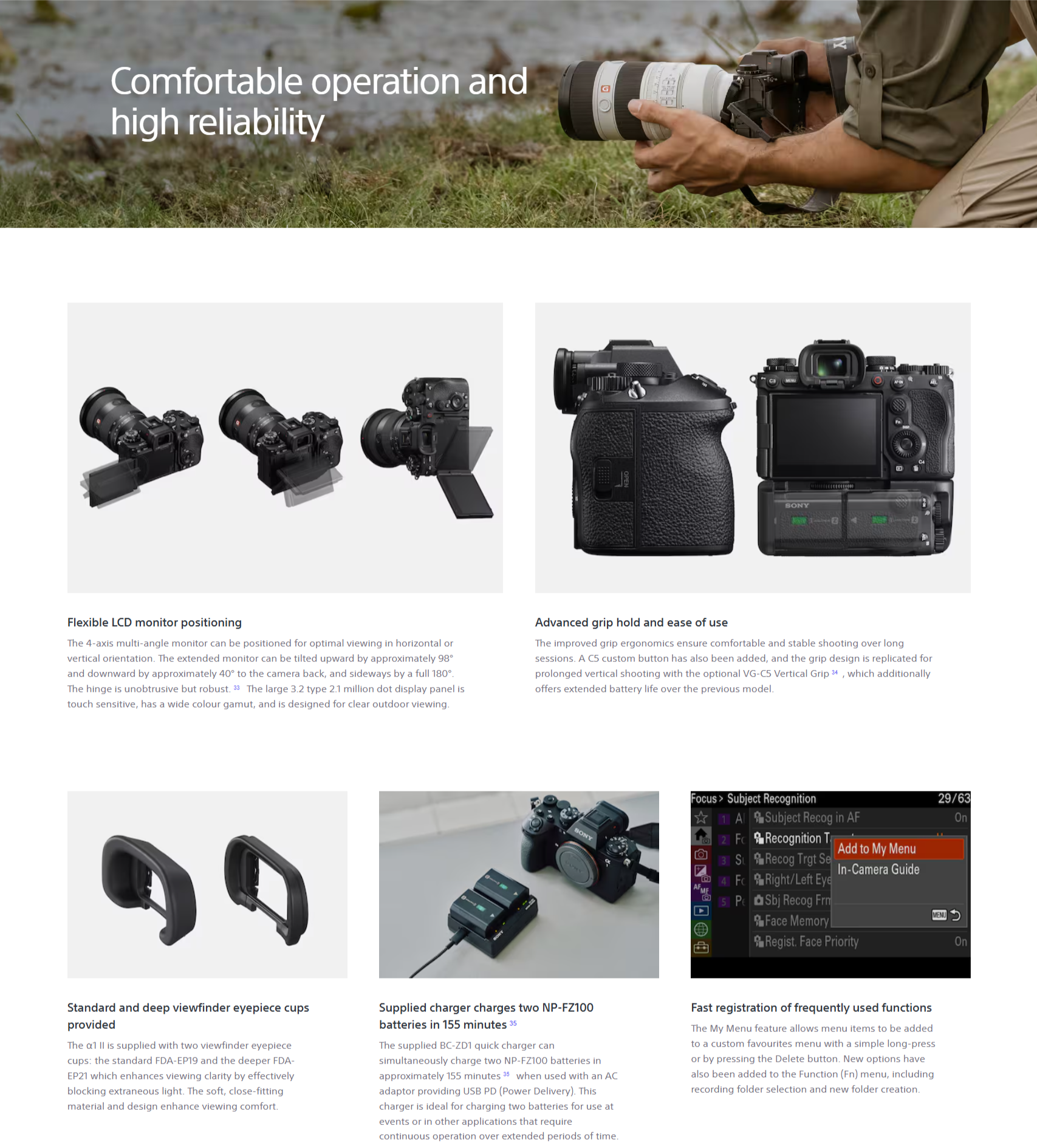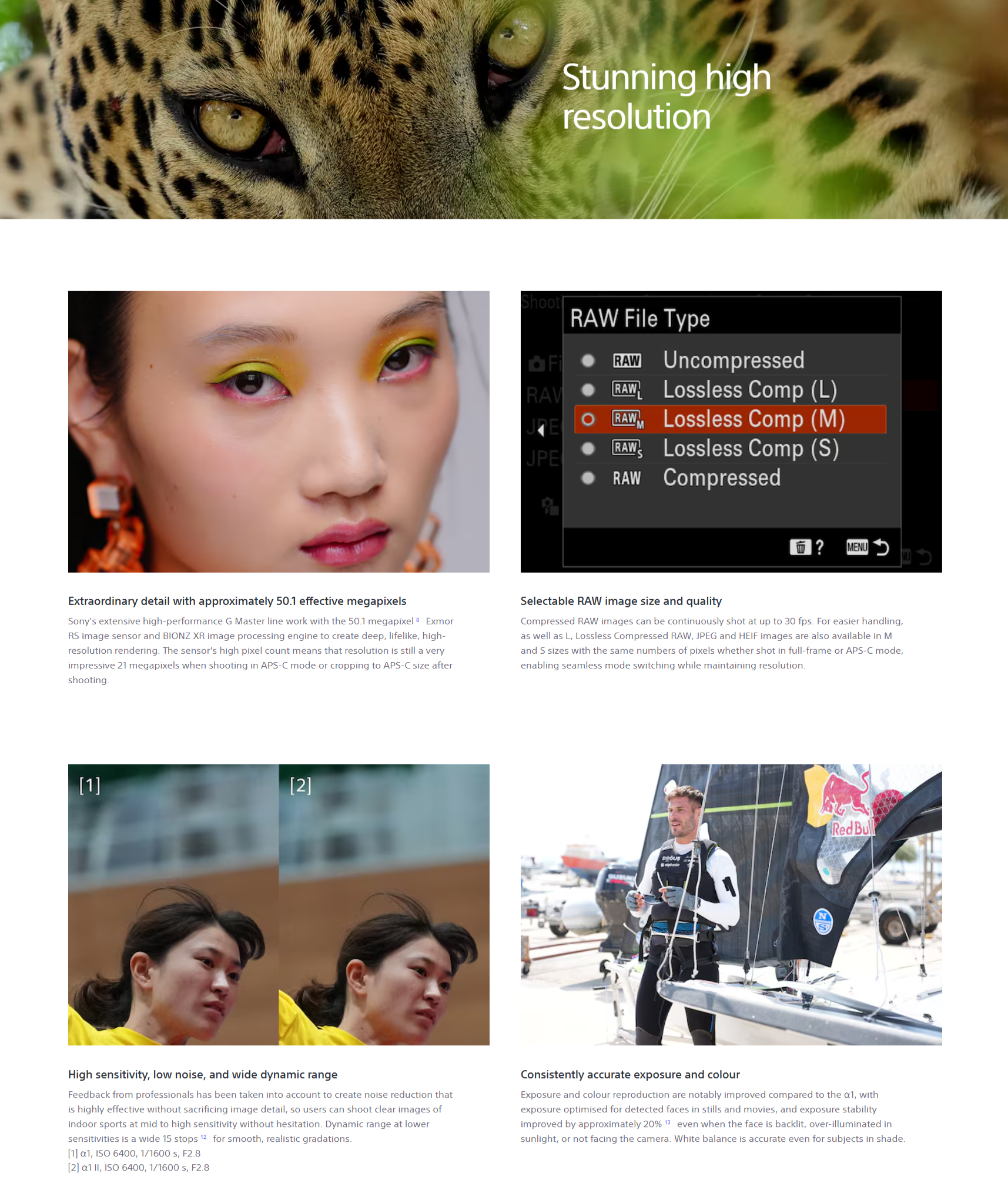 The α1 II gives users everything they need to achieve a higher capture success rate and more, including 50MP high resolution, AI-based subject recognition AF, high-speed continuous shooting, and an advanced workflow from capture to delivery that provides professionals with unrivalled efficiency and freedom.