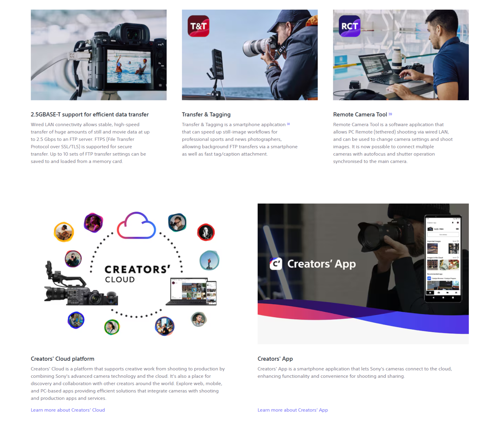 Creators' Cloud is a platform that supports creative work from shooting to production by combining Sony's advanced camera technology and the cloud. It's also a place for discovery and collaboration with other creators around the world. Explore web, mobile, and PC-based apps providing efficient solutions that integrate cameras with shooting and production apps and services.