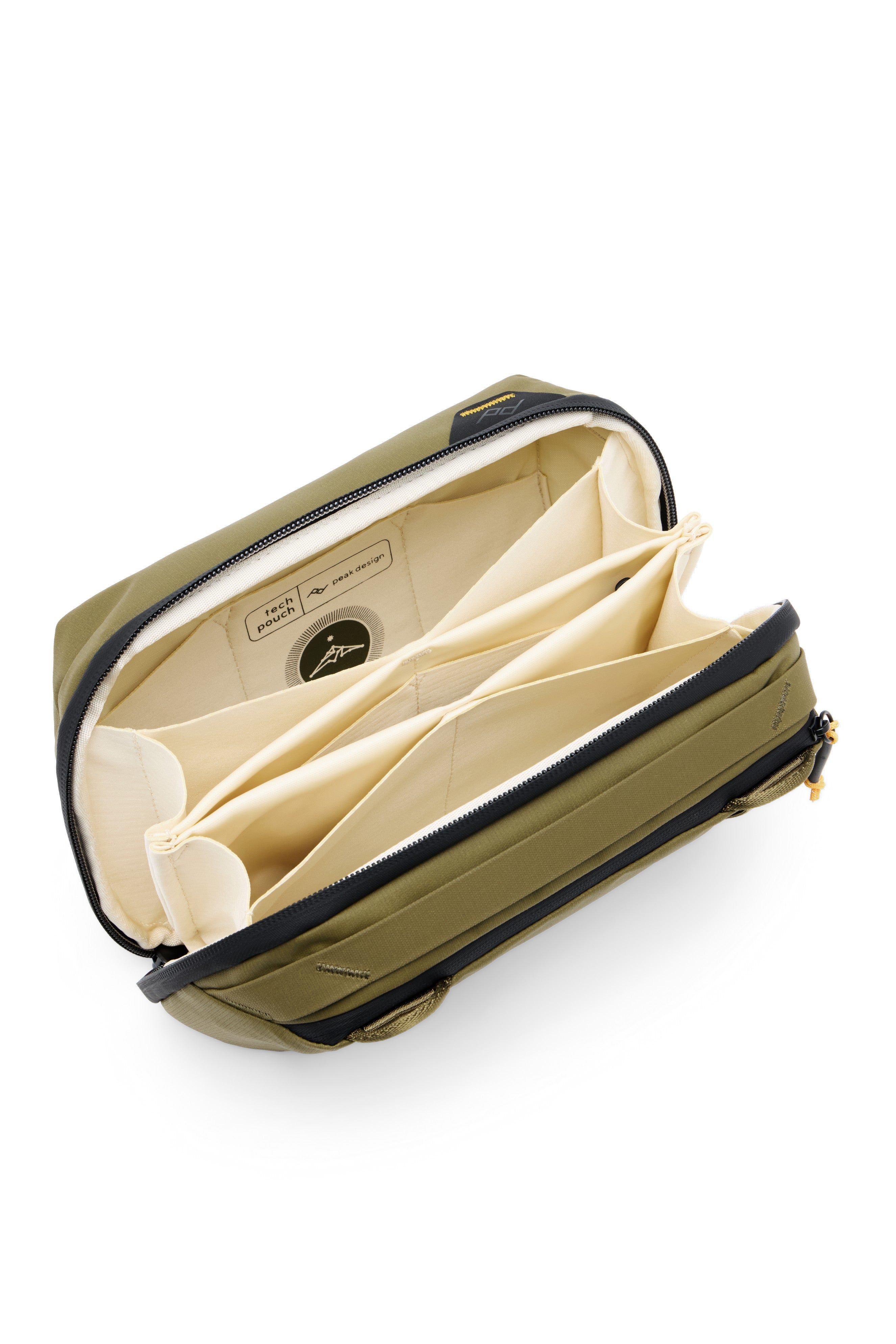 Whether storing cables, everyday gear, or travel essentials, Tech Pouch offers unrivaled organization and ease of access. Origami-style pockets create enormous spatial efficiency, letting you pack more into a smaller space while keeping your items neatly organized and easy to find. Elastic accessory loops keep items like pens, knives, SD cards, and batteries always within reach. Exterior handles and a clamshell-style opening make this pouch a delight to hold and access. External zip pocket has a cable pass-through for easy device charging. The 200D recycled nylon canvas shell is weatherproof and aesthetically clean.