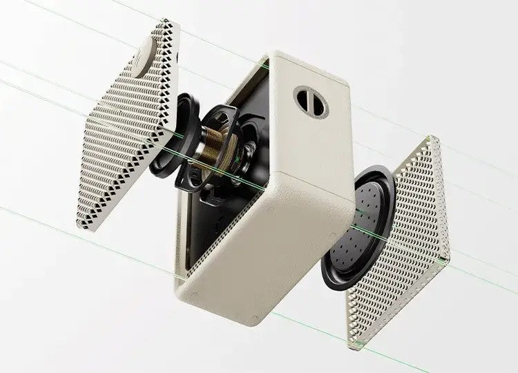 - Φ43mm full-range driver with neodymium magnets and Φ55mm passive bass radiator