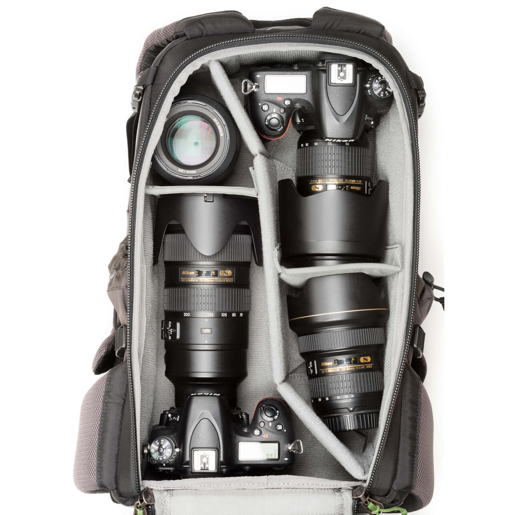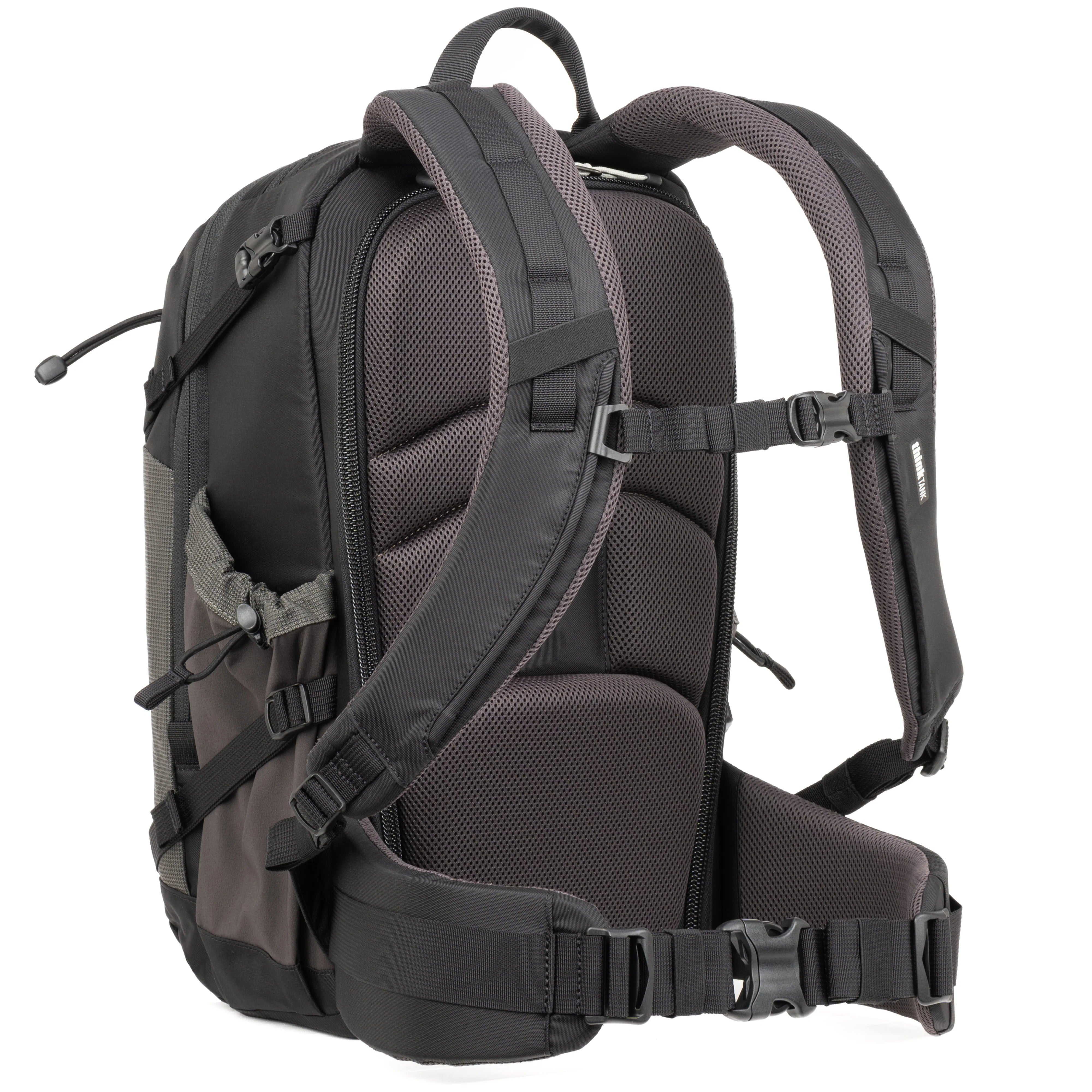 - Back-panel access to your camera gear without taking the bag off, allowing you to work out of the bag without getting your harness dirty, wet, muddy or icy